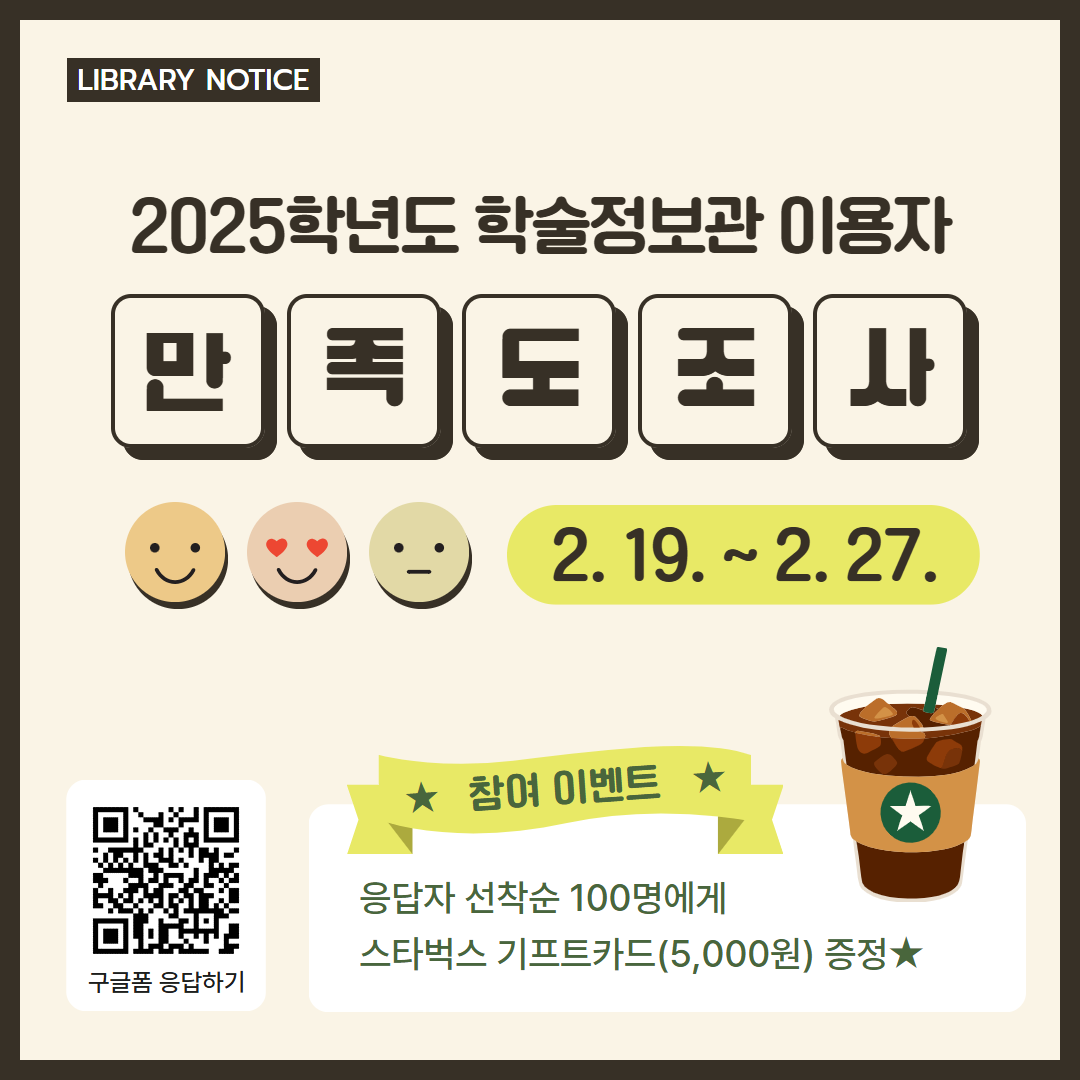 2025학년도 학술정보관 이용자 만족도조사(~2.27.)